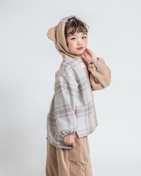 リバーシブルフリース素材で切り替えられたクマミミパーカー。